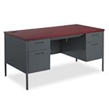 HON P3262NS: HON® Metro Classic Series Double Pedestal DeskDurable, attractively finished laminated top delivers excellent scratch and stain resistance. Color-matched legs, panels drawers and handles tastefully contrast with the top. The high-sided file drawer features full-extension triple-tied cradles and a spr