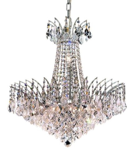Victoria 11 Light Chandelier Finish: Chrome, Crystal Trim: Elegant Cut?8032D24C/EC Finish: Chrome, Crystal Trim: Elegant Cut Features: -Chandelier.-Available in Royal Cut, Elegant Cut, Spectra Swarovski and Strass Swarovski crystal trims. Includes: -72'' Chain / wire included. Options: -Available in Gold and Chrome finishes. Color/Finish: -Crystal color: Clear. Specifications: -Accommodates: 11 x 60 - 660W Max 110V-125V (Candelabra) bulb. Dimensions: -Hanging weight: 35.-Height: 24''. Collection: -Victoria collection.