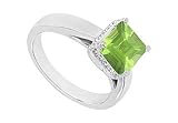 Peridot and Diamond Ring : 14K White Gold - 0.83 CT TGW Size 15