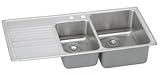 Elkay ILFGR4822R1 Lustertone Gourmet Two Bowl Double BasinConfiguration:Basins Right of Ribbed Area, Faucet Hole Spacing:One With both large and small bowls, this Gourmet sink offers maximum versatility and unmatched durability. Seamlessly formed of #18 gauge stainless steel Exposed surfaces are polished and hand blended to a lustrous satin finish Inside top radius of sink bowls features a highlighted finish Sound Guard undercoating prevents condensation and deadens sound Includes integral ribbed work area Bowl Depths: 10' (large bowl), 8' (small bowl). Coved Corners: 1' radius. Drain Opening: 3' See options to select bowl configuration and faucet hole spacing.
