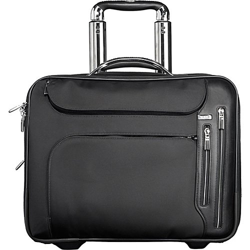 Tumi Arrive Laguardia Wheeled Brief with Laptop Insert Black?Arrive is meticulously appointed with the finest aesthetic and engineering features imaginable. It combines contemporary understatement with the ultimate functionality of Tumi's advanced technology. Signature details include smooth calfskin trim, elegant and resilient HTLST Polyester fabric, striking chrome accents, custom-made handles, intelligent interior organization and numerous patented components. This wheeled brief features a removable file divider with laptop compartment, removable accessory pouch and numerous interior and exterior organizer pockets. Holds a 17" laptop.